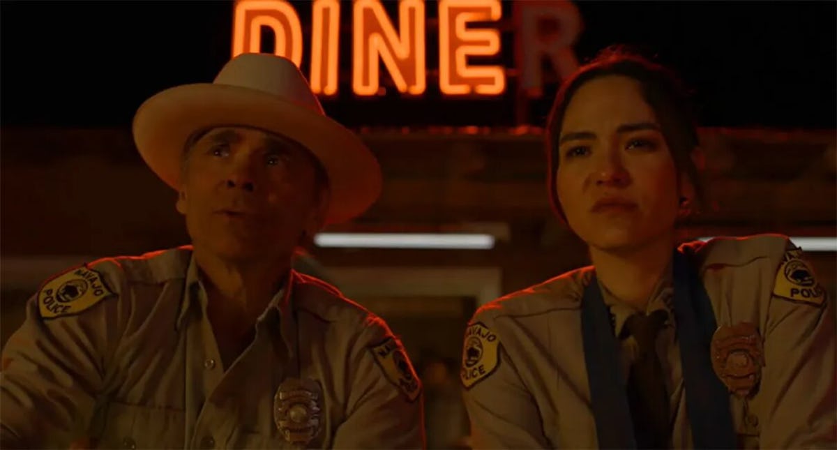 Tetapi tempat di mana serial ini benar-benar bersinar adalah dalam sutradara. Dalam satu shot yang akan saya ingat lama, Leaphorn dan Manuelito pulih setelah penembakan di diner. Huruf “R” dalam tanda “DINER” ditembak keluar, jadi di atas mereka terbang kata “DINE”, yaitu “Diné”, istilah yang benar untuk bangsa mereka. Bukan kebetulan bahwa episode ini didirect oleh Zahn McClarnon sendiri, yang membuktikan dirinya adalah hati dari serial ini.